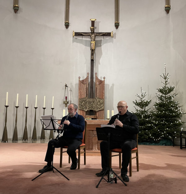 Die Klarinettisten Thomas Laubersheimer und Volker Brandes aus Minden gaben am 27.12.2025 für die Schwestern und die Weihnachtsgäste im Exerzitienhaus ein Konzert in der Mutterhauskapelle. Dabei wurden bekannte Weihnachtslieder aus verschiedenen Ländern gespielt. Herr Laubersheimer ist über Minden schon lange mit uns Schwestern verbunden.