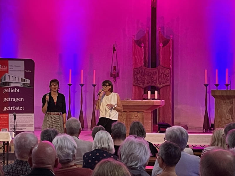 Unterstützt wurde das VkA Hospiz- und Palliativzentrum Pauline, das im Garten der Schwestern entstehen wird. Vor zahlreichen Besuchern bot der achtköpfige Chor eine einzigartige Vorstellung untermalt mit gelungener Illumination. Chorlieder wechselten mit Duetten. Das Programm bot einen bunten Mix aus Popsongs der letzten 40 Jahre und neu gewandeten Volkliedern wie z. B. „Sah ein Knab ein Röslein stehen“. Viel Applaus gab es auch für die lokalen Ohrwürmer „Paderborner Brot“ und „Pader“.
